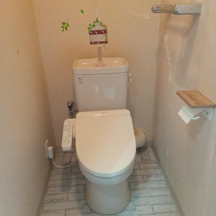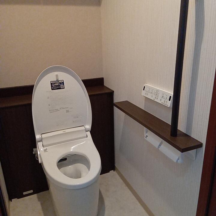 既存のシャワートイレから、見た目もすっきりでお手入れらくらくなキャビネット付きトイレ「Jフィット」にリフォームです。