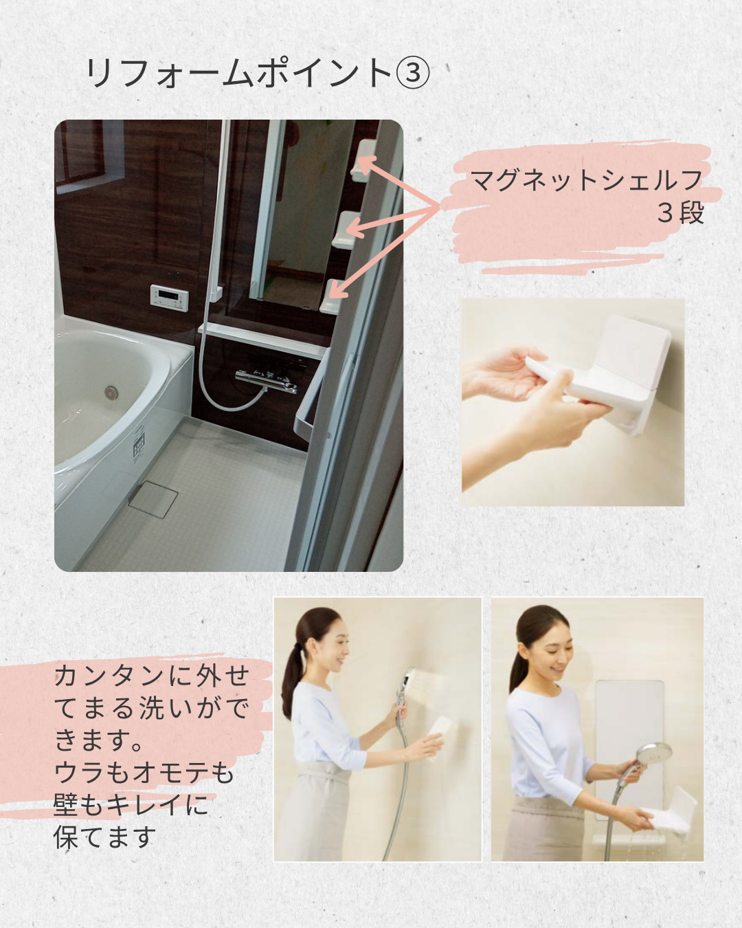 戸建て 在来工法のお風呂からシステムバスにリフォームです。 タイル張りの昔ながらのお風呂も、ユニットバスにすることで、あたたかく、快適なお風呂空間に変身します。 浴槽や風呂フタに保温機能がついていることから、見た目の変化だけでなく、入浴中の環境の変化も感じられます。 寒い季節になる前に、お風呂のリフォーム検討してみませんか♪