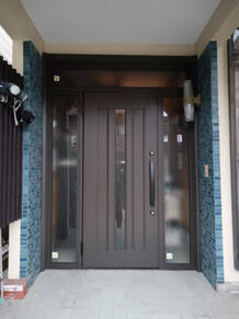 リシェント玄関ドア3アルミ仕様 手動両袖ランマ付き C12N オータムブラウン