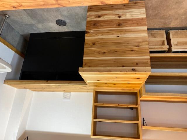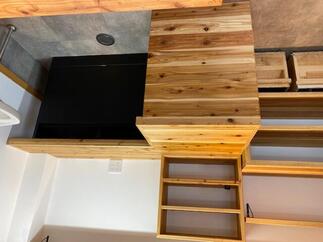 世界中のコーヒー豆から選び抜いて仕入れた50種類以上の豆が並ぶ自家焙煎珈琲工房のリフォーム。 10数年の間に増えていった什器配置は動線を考慮すると今がベストということで、配置はそのままに新什器を杉の無垢材で統一し、寸法は微調整しました。 白の壁紙をベースに木目の柔らかさが珈琲豆の色を引き立てます。