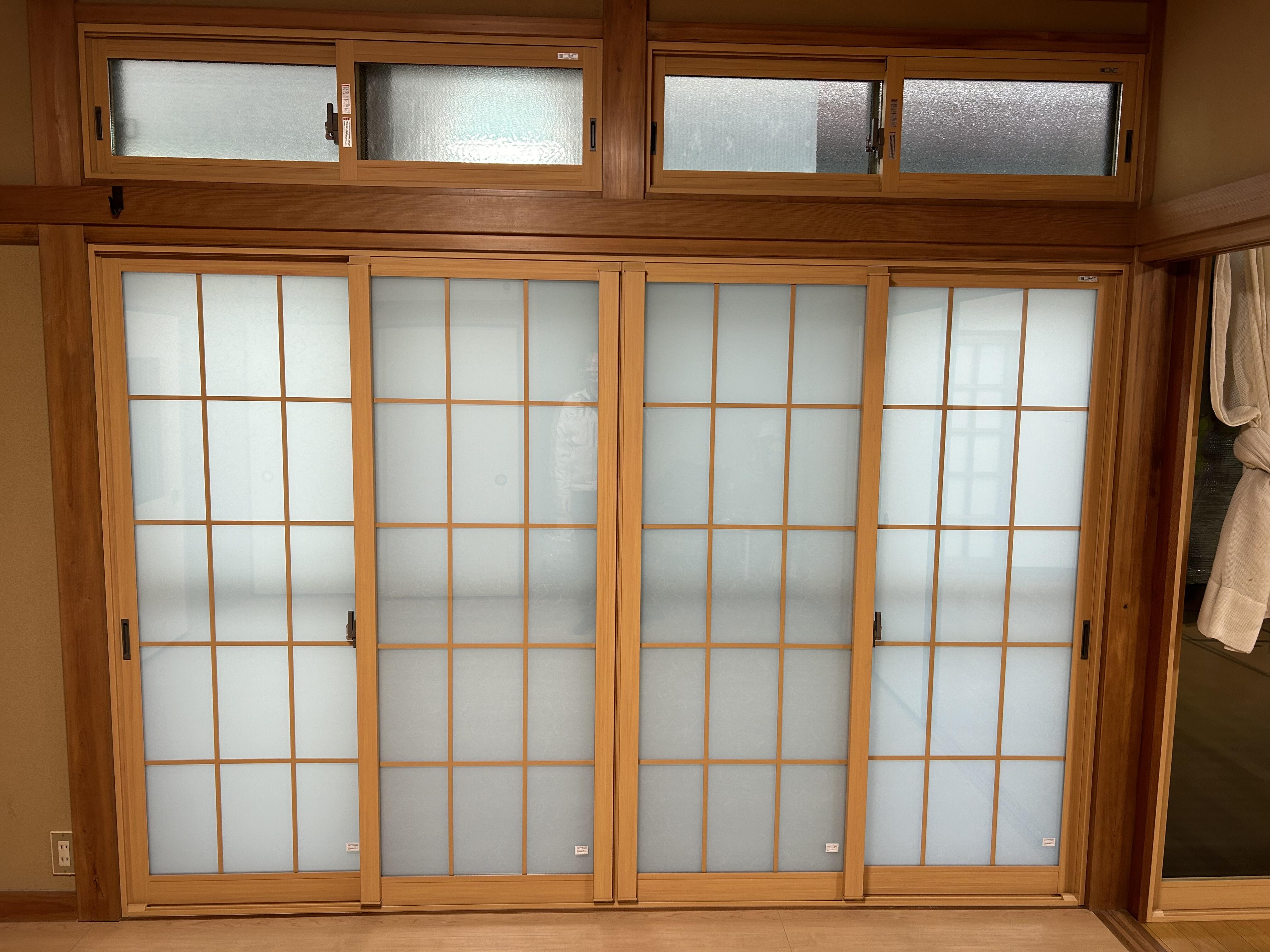 和室の鴨居と欄間、障子を外してLIXILの内窓リフォーム製品『インプラス』を設置しました。 インプラスなら大掛かりな工事は不要。既存の窓の内側に取り付けることで、断熱性や遮音性を高め、明るく快適な住環境を実現します。