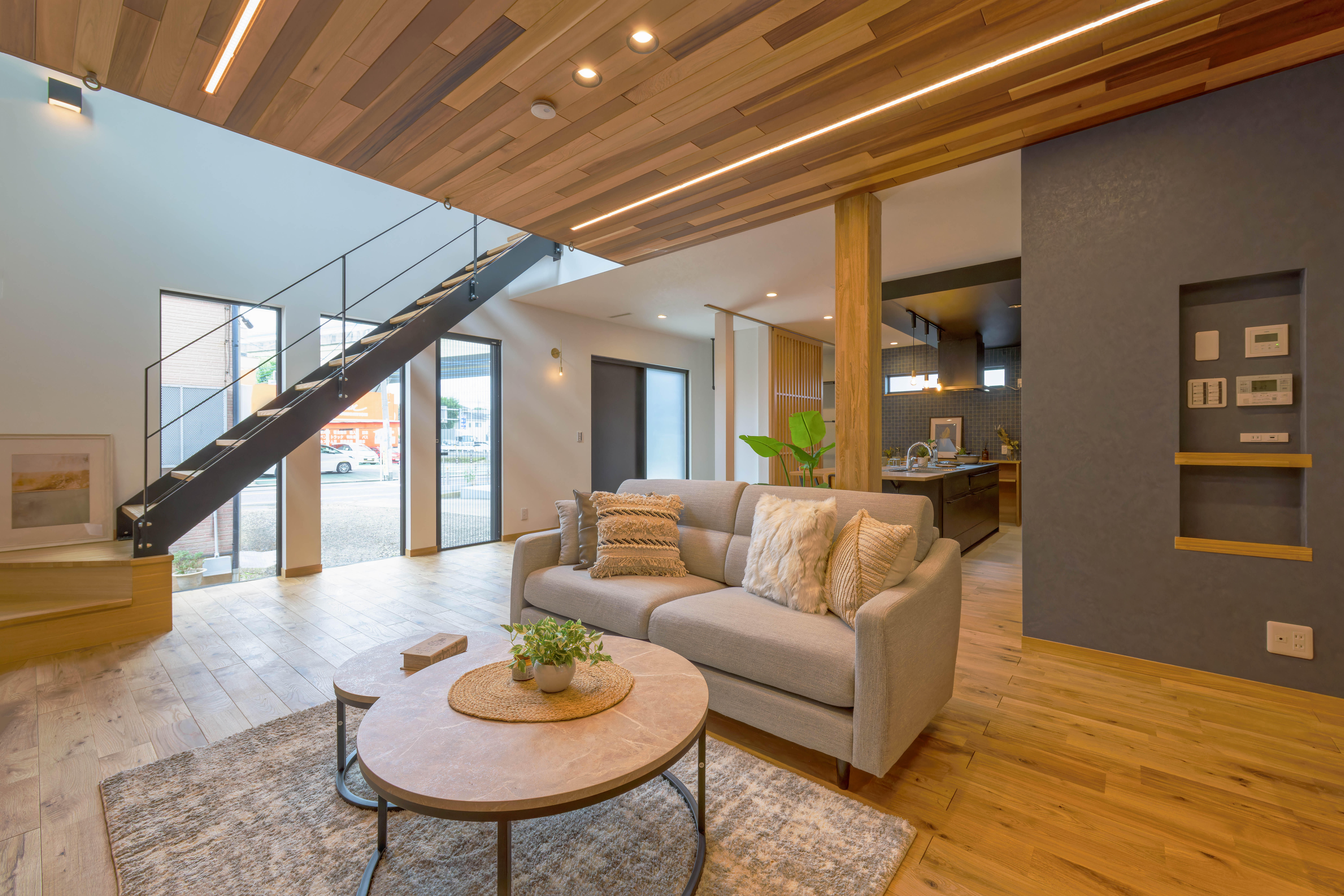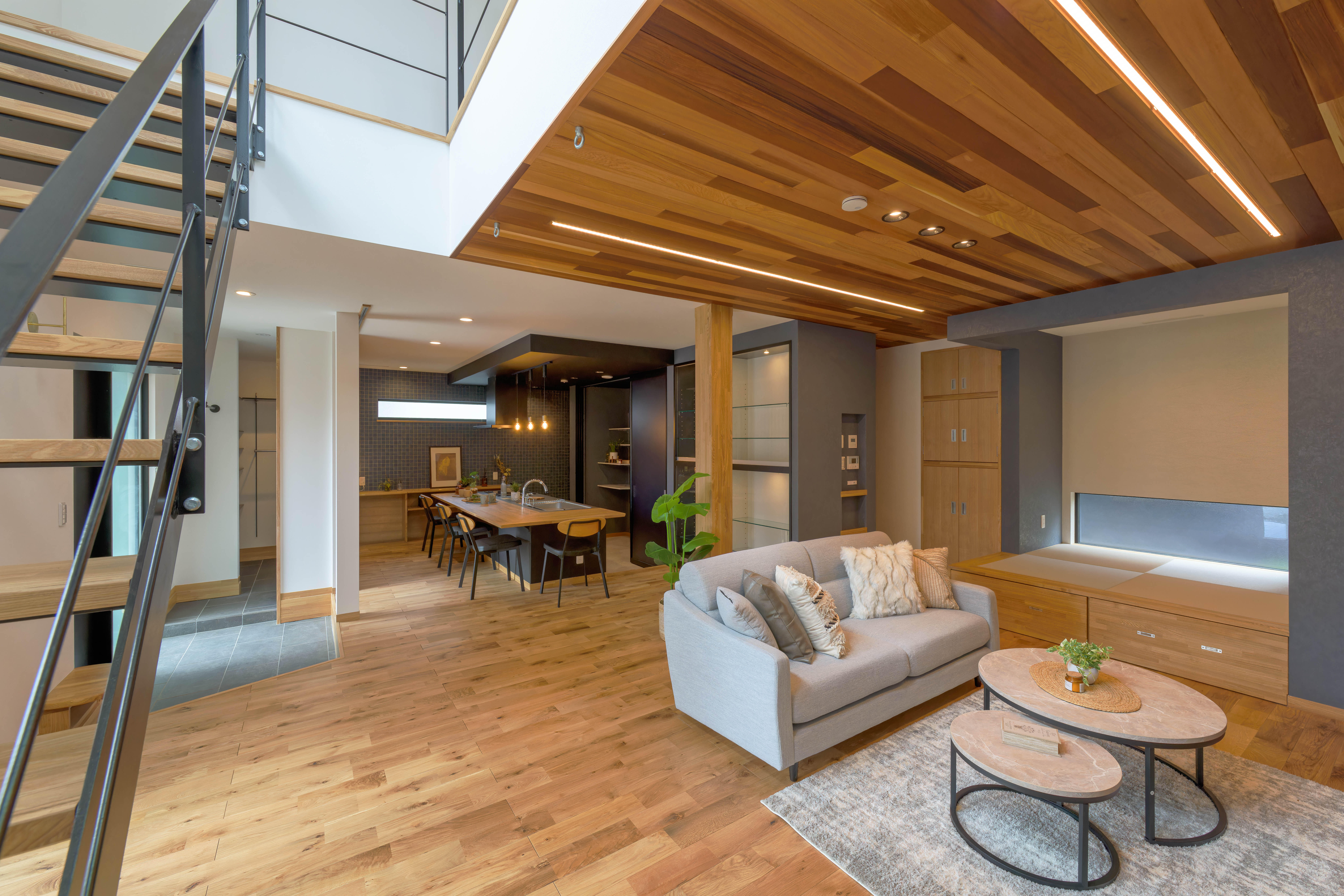 空間ごとに表情が変わるアクセントカラーを取り入れ、毎日がHappyになるスタイリッシュで快適なおうちが完成しました。