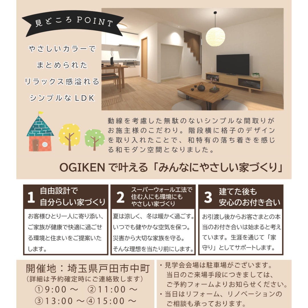 耐震性能や断熱性能に特化したスーパーウォール工法、一年中快適な室内環境を実現する換気システム、省エネ住宅の最上位モデルとされるZEH基準を満たした最新の家づくりを体感いただけます。