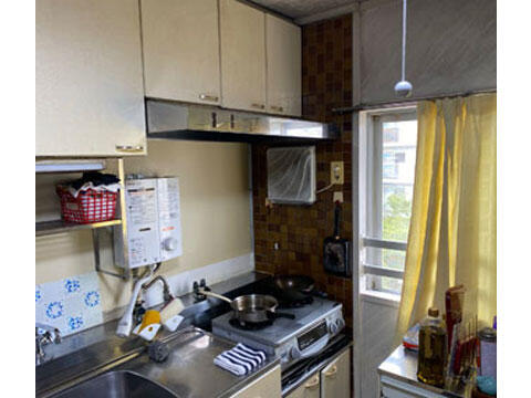 もともとのキッチンには団地特融の室内湯沸かし器があり、それを使って湯をご利用されておられました。
