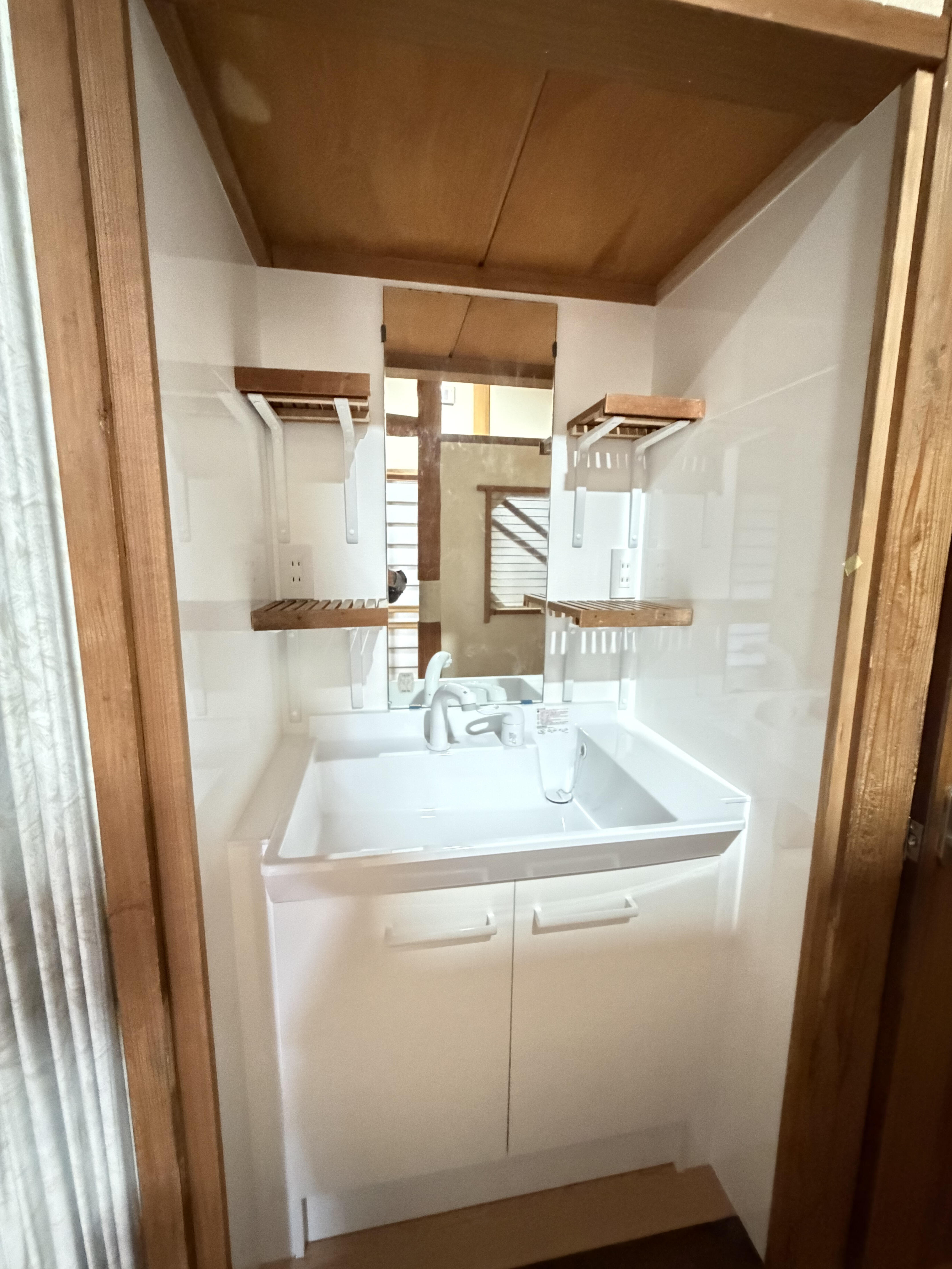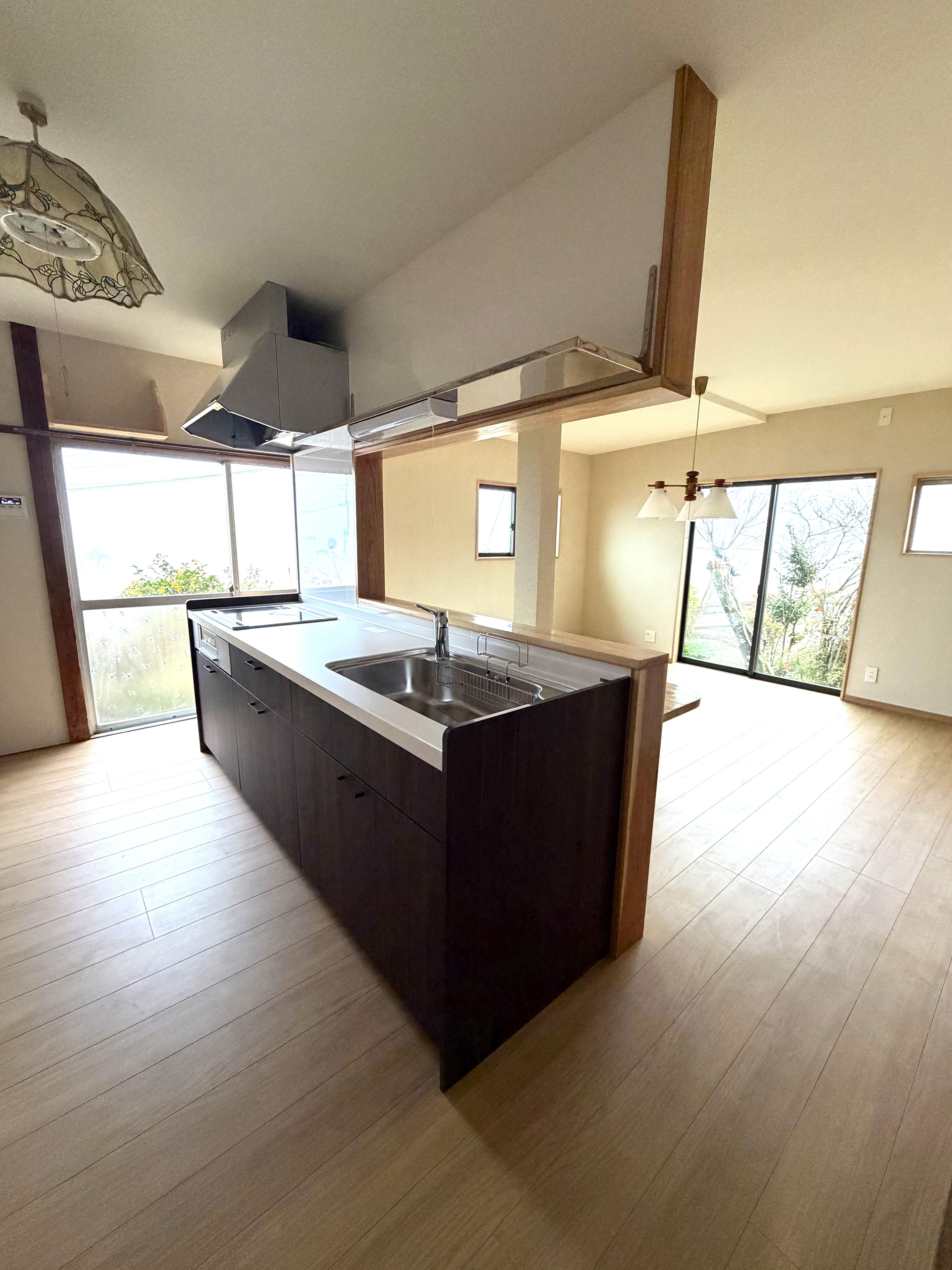 内部改修でさらに快適な住まいになりました。 ◎窓はペアガラスで断熱性能UP&防音にも ◎洗面台は使いやすく一新。 ◎キッチンはリビングを見渡せる対面タイプに ◎床・壁も張替えて明るい空間へ ◎段差のあった縁側や玄関などには、式台・ステップ台を設置しました さらにエコキュートを設置し、オール電化になりました!