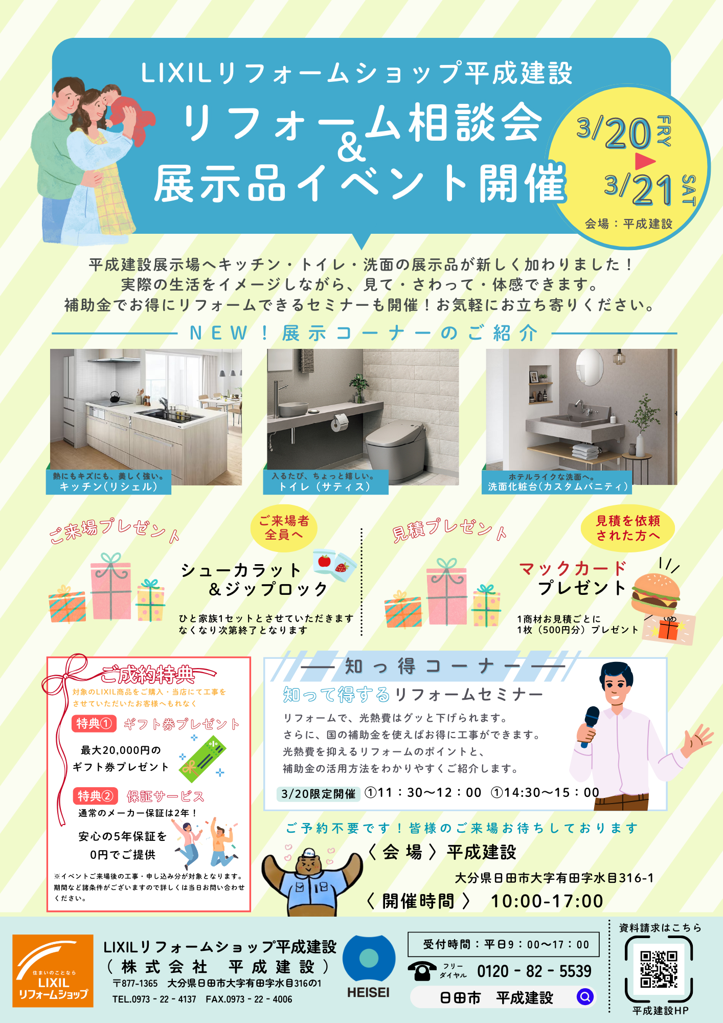 本日は3月20日金曜日、21日土曜日に開催予定のリフォーム相談会&展示品イベントのお知らせです!