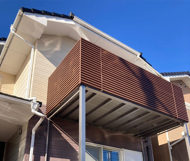 お洒落バルコニーに変わりました。 お客様は「今のバルコニーから水漏れがしているのが気になる。バルコニーの床が浮いていて危ないので何とかして欲しい。」というご要望でした。 バルコニー修理を当社はは検討しましたが、バルコニーを広くする事が出来ますとお伝えしたところバルコニー交換となりました。