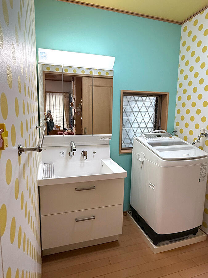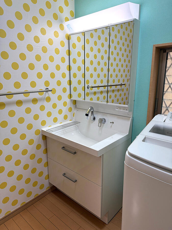 この度は洗面室リフォーム工事をSAKURAに任せていただきありがとうございます。 洗面室リフォームでは、K様の選ばれるクロスの組み合わせがすごく素敵で、ドット×パステルで可愛い洗面室になり雰囲気がガラッと変わりましたね! お選びいただたいた洗面化粧台も収納力がアップしご快適にお使いいただけますと幸いです。 また何か気になることがございましたら、いつでもご連絡くださいませ!