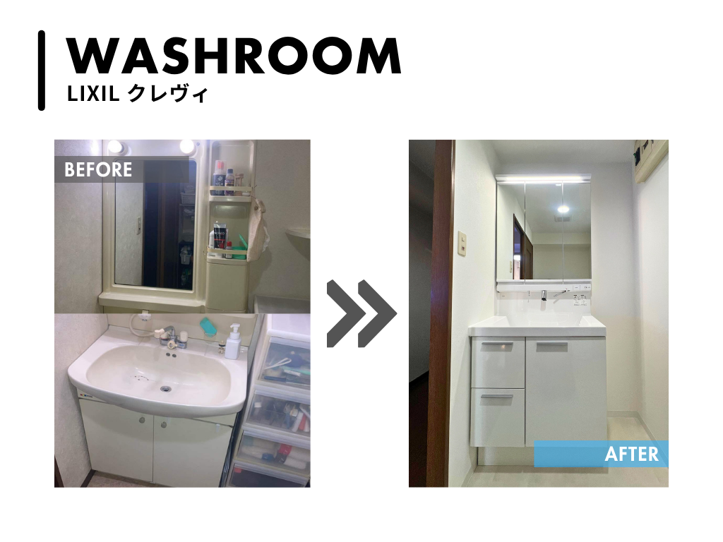 ユニットバスをはじめ、洗面化粧台やトイレなどの水まわり全体の日々の負担を軽減しながら、より快適に過ごせる住まいへと整えました。