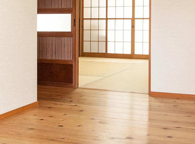 4室あった二階部分を「大きなLDKにしたい」というご要望で設計しました。結果、二階部分は増築すると同時に、勾配の強い大きな屋根に変更して、空間を増やすことに。これによって、外観を和風から洋風テイストに仕上げました。二階のLDKのフローリングは、45度の角度をつけた「バイアス貼り」にしています。こうすることで、距離感が生まれ、部屋が広く見えるのです。二世帯住宅の相談を受けるときには、特にプライバシーを意識した提案をします。ご夫婦からご両親に「玄関は別にしたい」とは言いづらいでしょうから、こちらから先にお話するのです。防音も含めて、二世帯住宅ではプライバシーへの配慮が欠かせません。