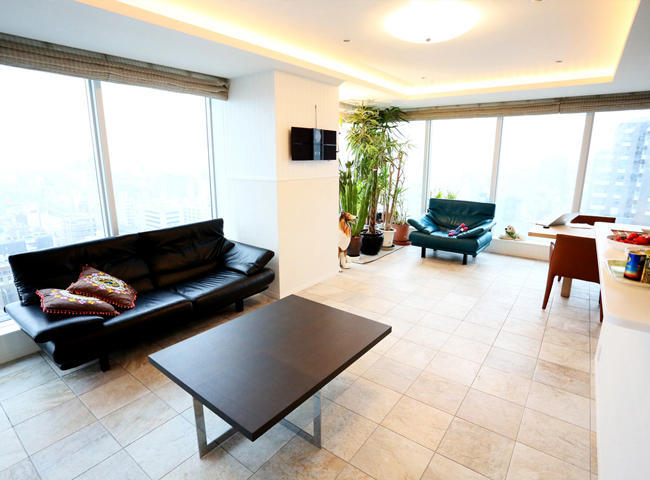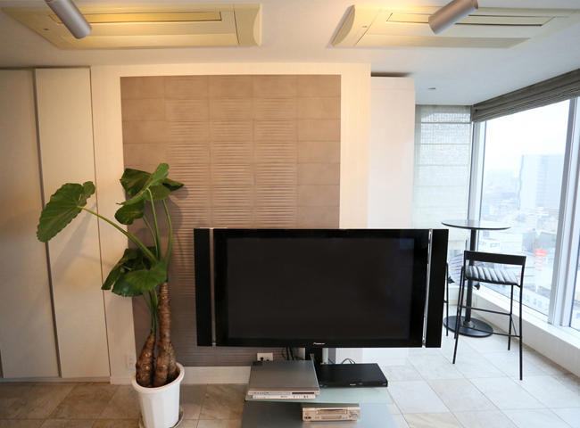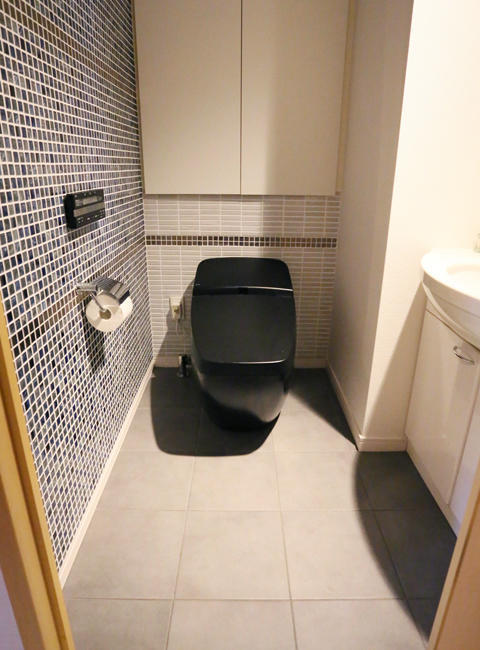 犬が暮らしやすいことを第一に考えました。滑りにくく傷がつきにくいタイルの床は、旅行先のペンションで見て気に入っていたもの。また、暗いと感じていたテレビスペース、玄関、トイレにスポットライトを追加し、快適性アップを図っています。