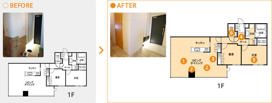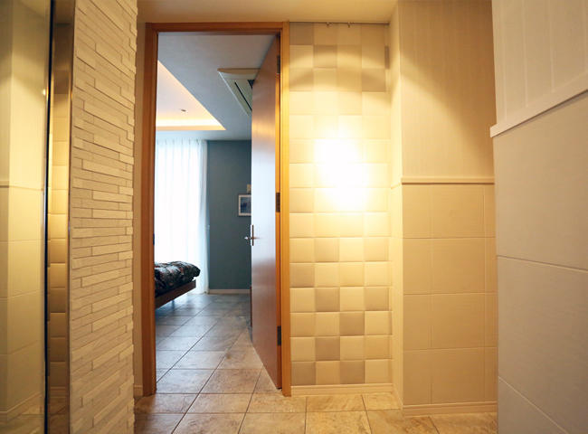 2頭の中型犬を飼うようになり、壁や床の傷と汚れが...。愛犬家ならではの悩みを解消するため、フローリングの床をタイルに変更。壁には汚れが落としやすいエコカラット採用しました。タイルの床は滑りにくく、犬たちにとっても、嬉しいリフォームです。