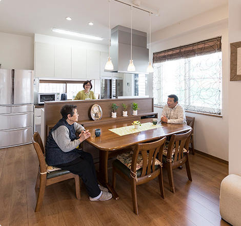 新築当初は6人暮らしだったわが家も、息子と娘が独立し、父も他界したことで3人暮らしになりました。これまでにも壁に手すりをつけるなど小さなリフォームを行ってきましたが、年齢的にリフォームをするのはそろそろ最後。長年、共に暮らしてきた母と妻へのプレゼントの気持ちも込めて、家族が集まるリビングを中心に大きくリフォームしました。LIXILリフォームショップ ライファ岡崎美合さんは、他の施工店ではできないと言われた対面式キッチンの導入をはじめ、こちらの要望をさまざまな形で実現してくれて感謝しています。母がまだ元気なうちに、満足のいくリフォームができてよかったです。