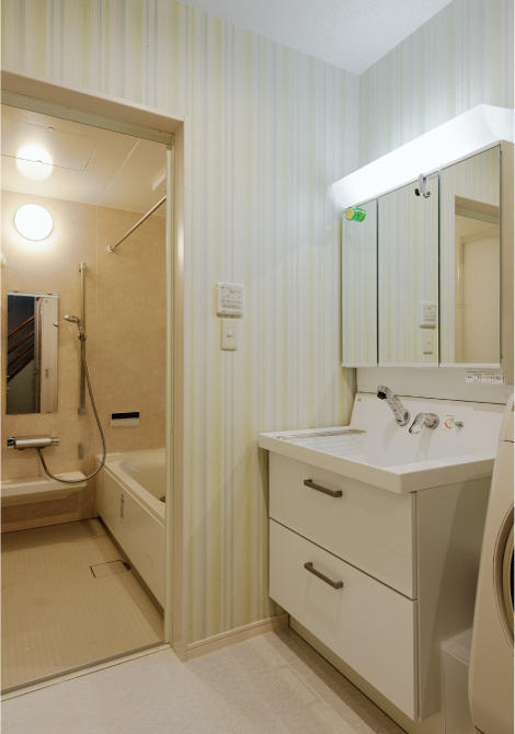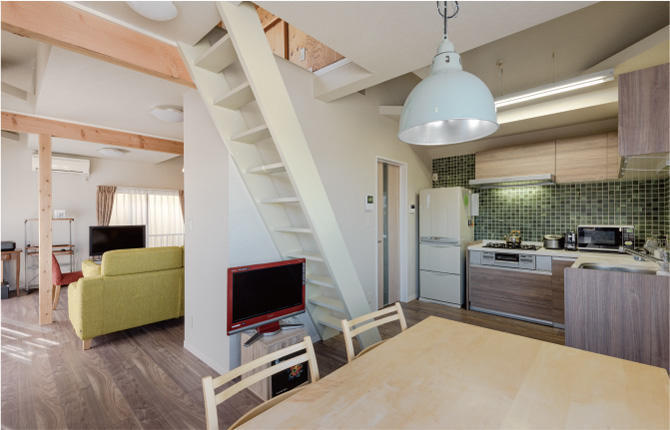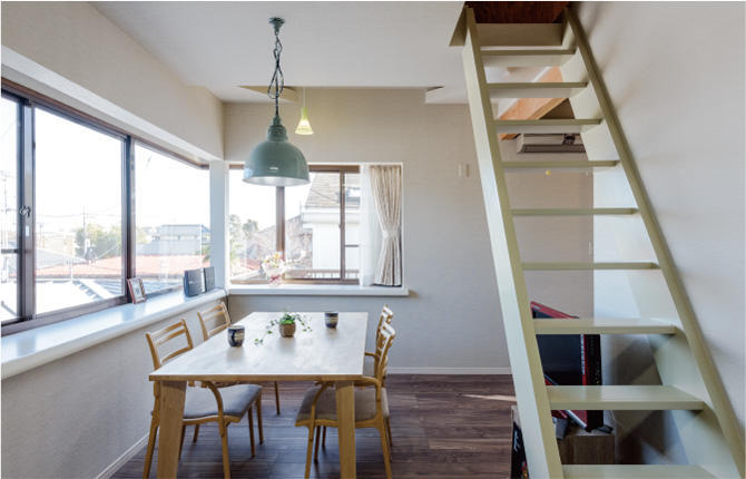 建物本体には断熱を十分施し、筋交いを加えたり、地震による建物変形を防止する火打ち梁を設けるなど、快適性や補強に力を入れました。物置として重宝する屋根裏は、既存の窓を活かし、LDへつながる間口を設けることで、冬は暖かく、夏は熱気が抜ける造りに。またデザインは、壁紙や照明にこだわり、機能性・ランニングコストを考慮しつつも遊び心のある空間に仕上げています。