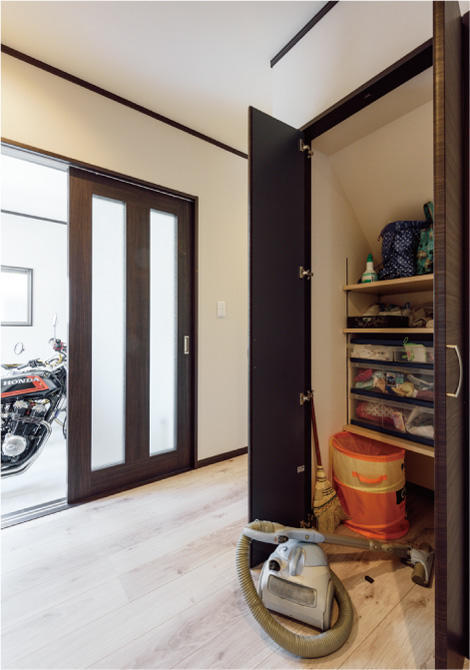収納を考える上で、効率と容量には非常にこだわりました。キッチンのデッドスペースには見せたくない冷蔵庫やごみ箱置きを、洗面所に近い廊下にはタオルなどの収納スペースを、階段近くには掃除用品や季節家電の収納スペースを…と生活導線に沿った設計となっています。耐震補強についても、耐震計算のもと、補助金を活用しながら進めることができました。