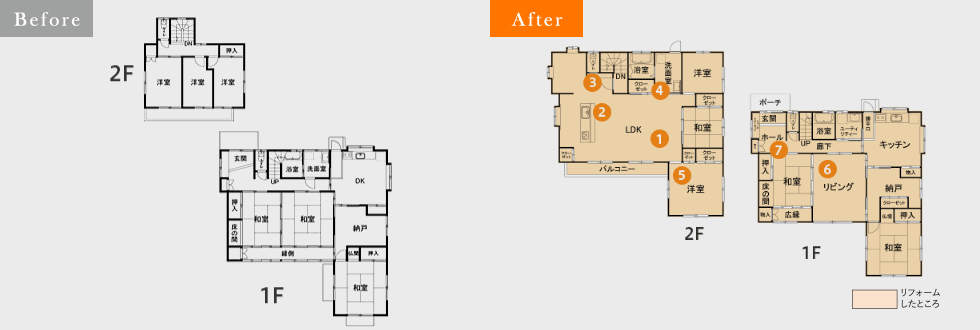 家を見に来てくれた親戚も「すごく良く変わったね。」と言ってくれましたし、娘や私も友達を呼んで楽しい時間を過ごしています。以前は収納があったものの使いづらく、ご相談したところ、生活導線に合わせて収納を設計して頂き、今はストレスなく片付けられるようになりました。またダイニングとキッチンが一体となったことで食事の際は自然と家族が手伝ってくれるようになり、とても楽になりました。
