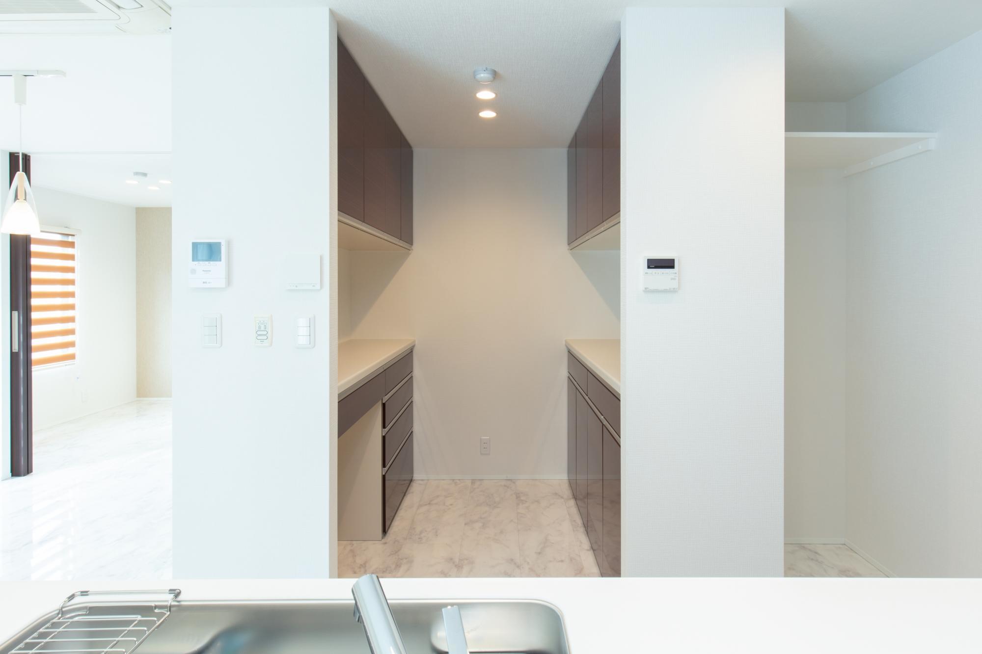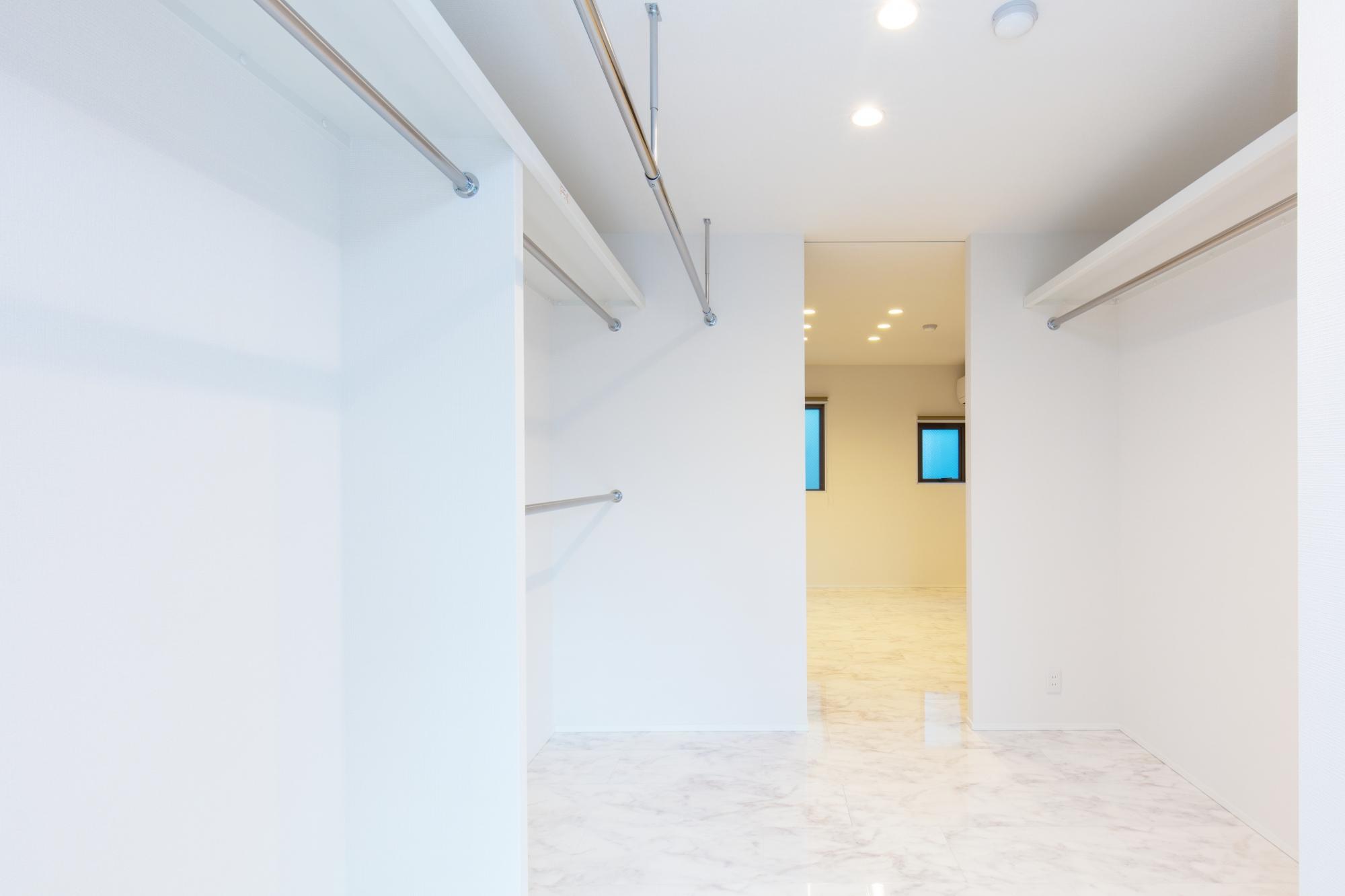 長くきれいに保てるように、玄関横には約2帖のシューズクローク、キッチン背面には大収納パントリー、寝室には4.5帖のウォークインクローゼットを配置。