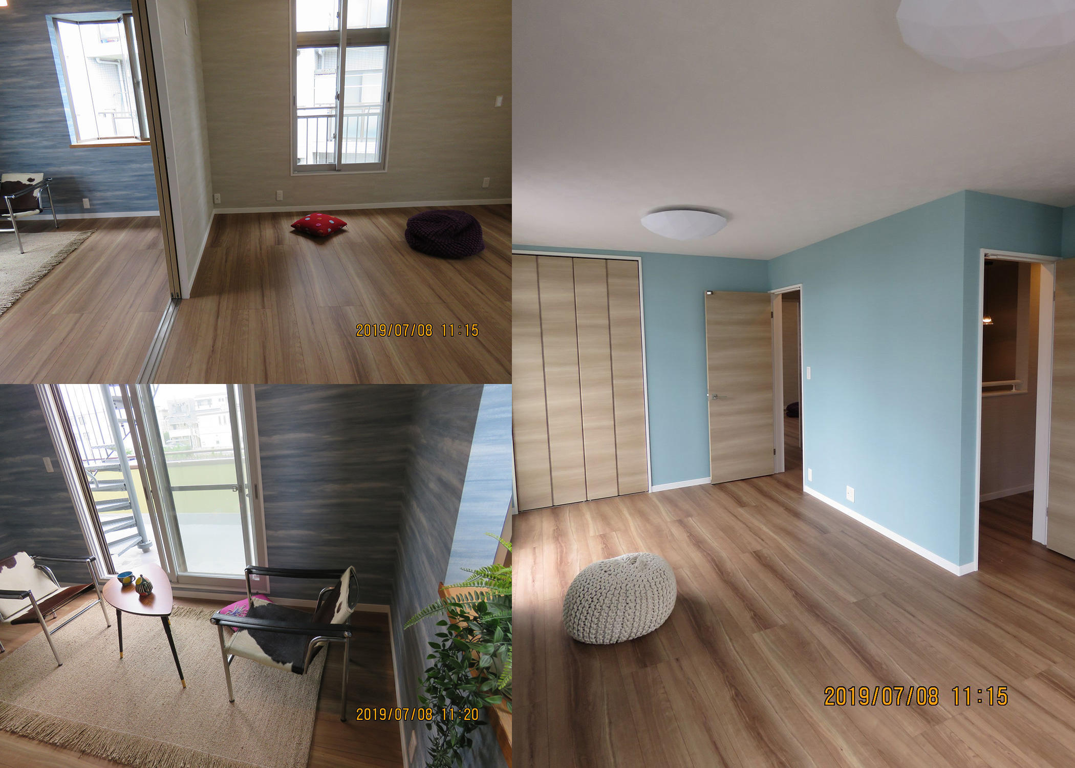今回のリフォームは、お父様が一人で住んでいるご実家に、娘夫婦と3才と6才の女の子が同居し、計5人が暮らすための住宅計画で1階にお父様の部屋と共有のLDK、2階に娘様ご家族4人の居室をレイアウトしました。