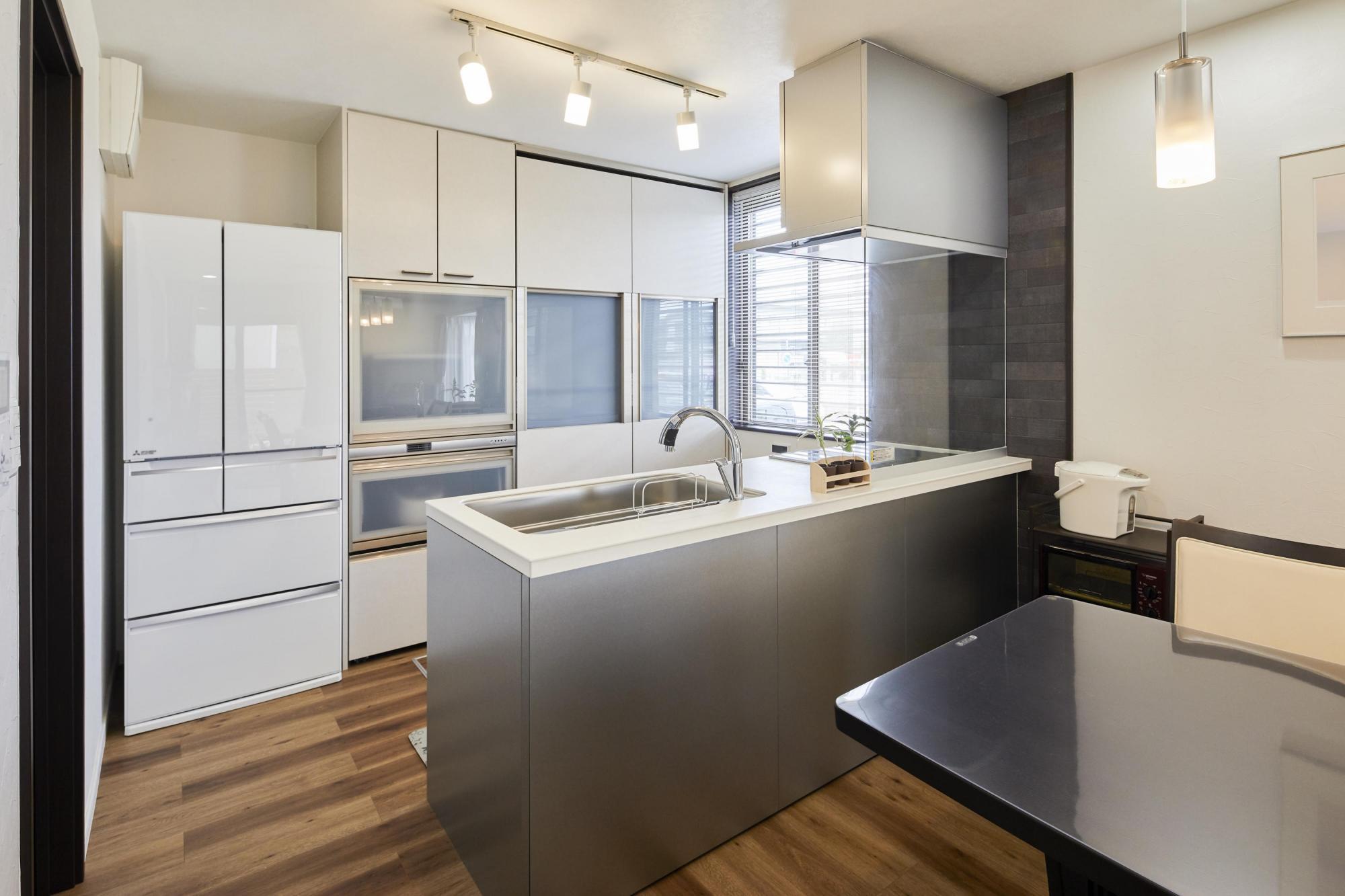 吊戸棚と腰壁をとり、オープンキッチンにして開放感あり、対面キッチンなので家族との会話も弾みます。