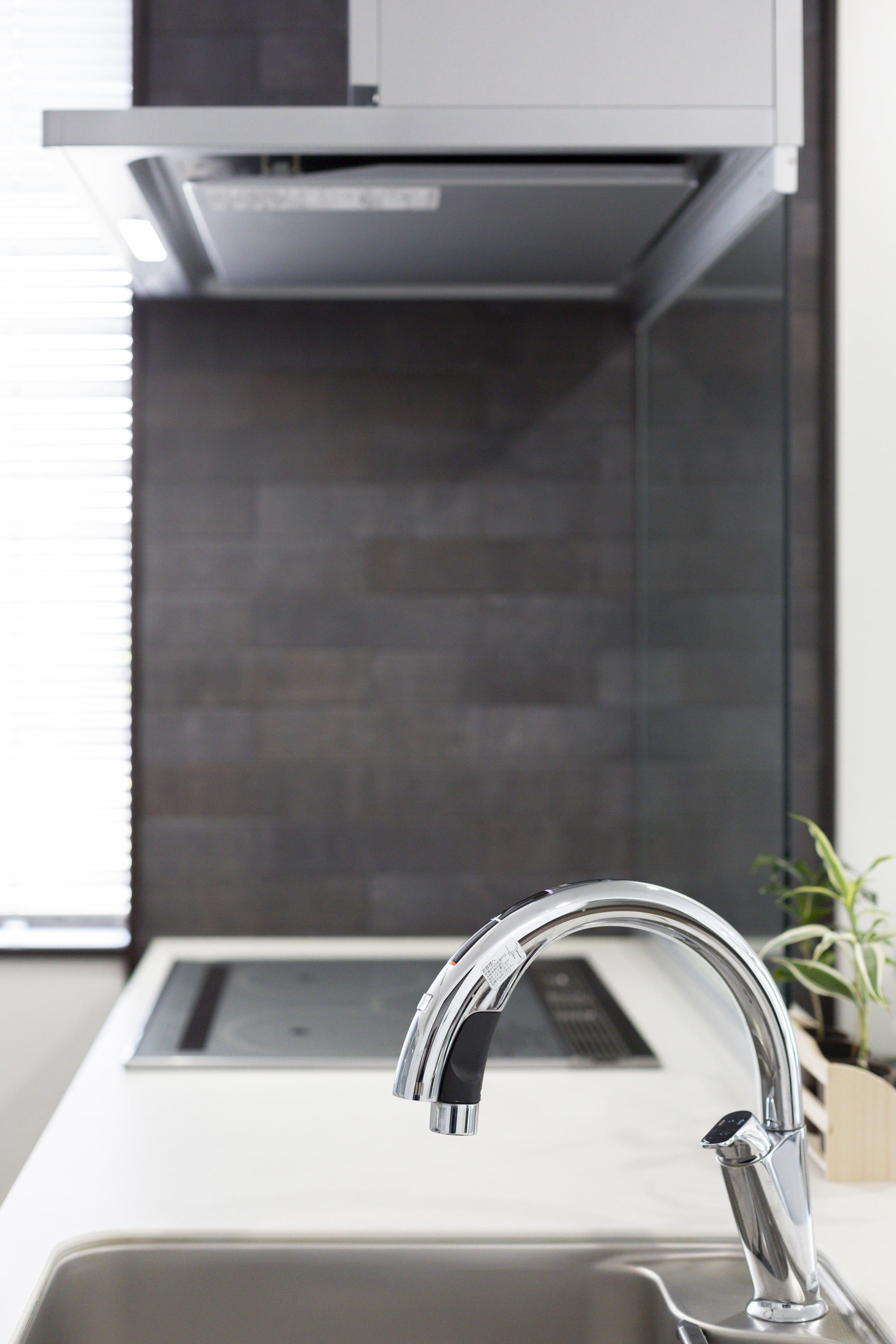 キッチンリビングについては女性意見を浴室については 入浴好きなお父様の意見を尊重して商品を選定いたしました。キッチンについては大型収納と自動水栓です。側面にはお義母のこだわりでタイル仕様としました。