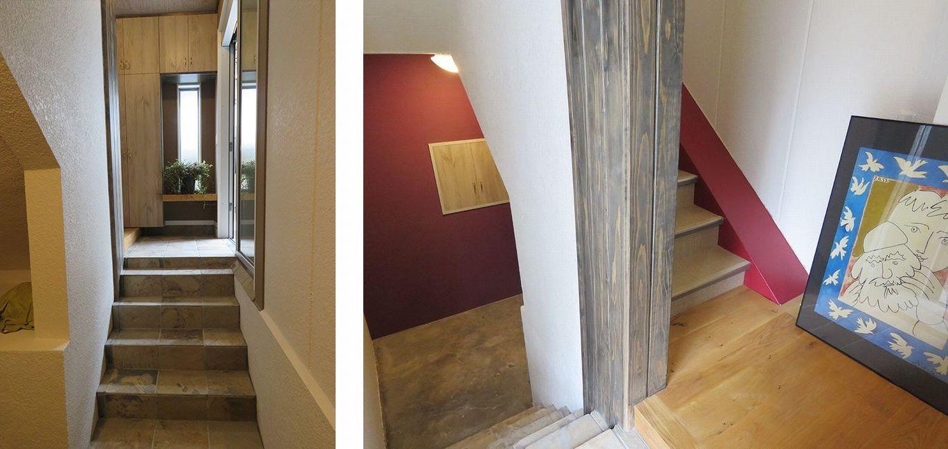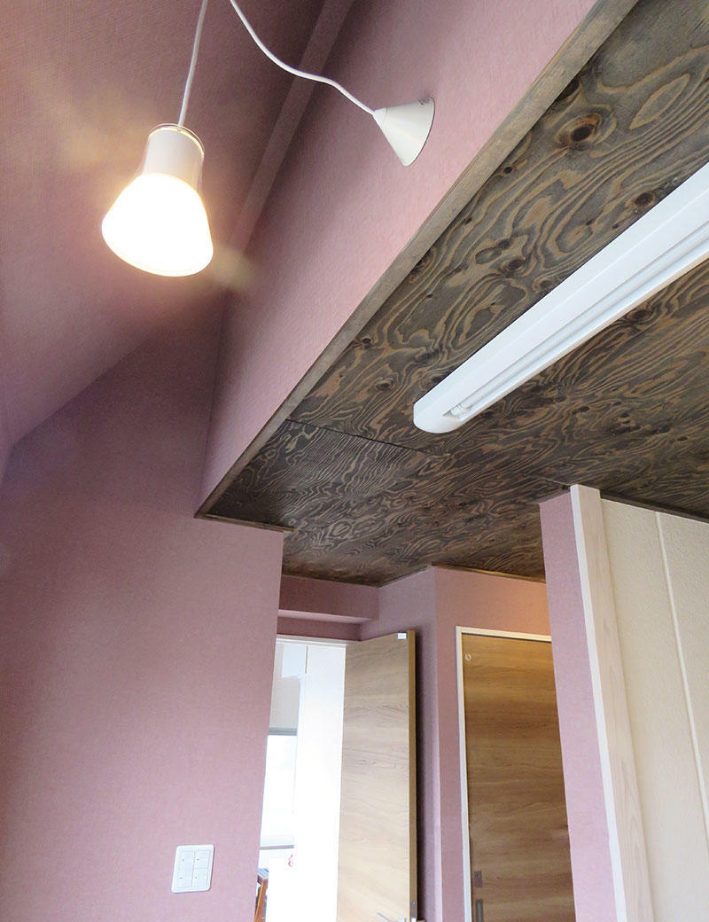 工事途中で解った事ですが奥様は色彩にこだわりがありブルー系とグリーン系の色は嫌いで赤やオレンジという暖色系が好きという事でした。ブルーとグリーン系が好きな私としては苦心しましたが様々なところに赤やピンクやパープル系の普段使わない色を使いましたが結果的には大変気に入って頂く事が出来ました。