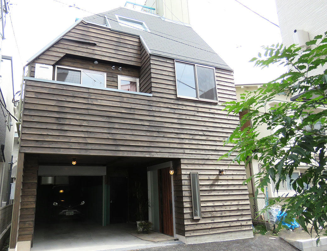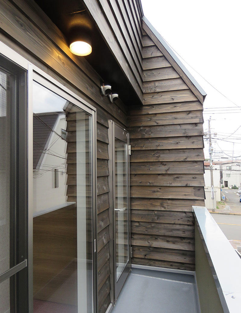 50代の長男のご夫婦は近くのマンションに住んでいたのですが、殺風景なこの建物に住むのは躊躇されていたのですが住居らしくして欲しいというご依頼がありました。まずは外観のイメージとして昔ながらの木造住宅のイメージにしたいと思い、一部増築部分がありましたので正面部分の外壁材を杉板の南京下見板貼にしました。