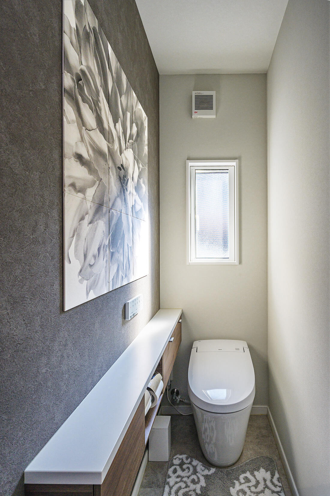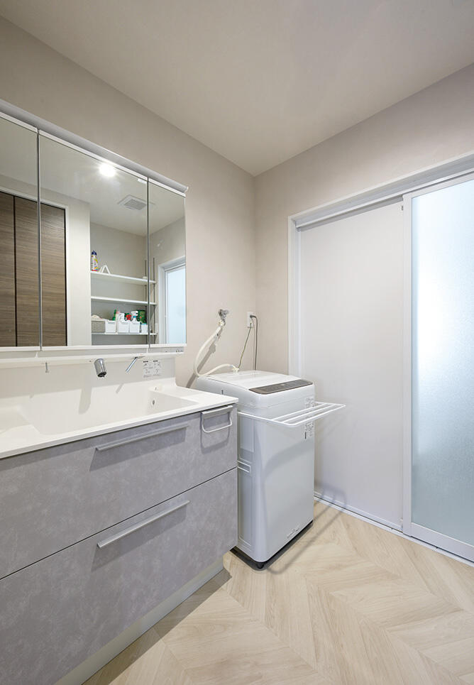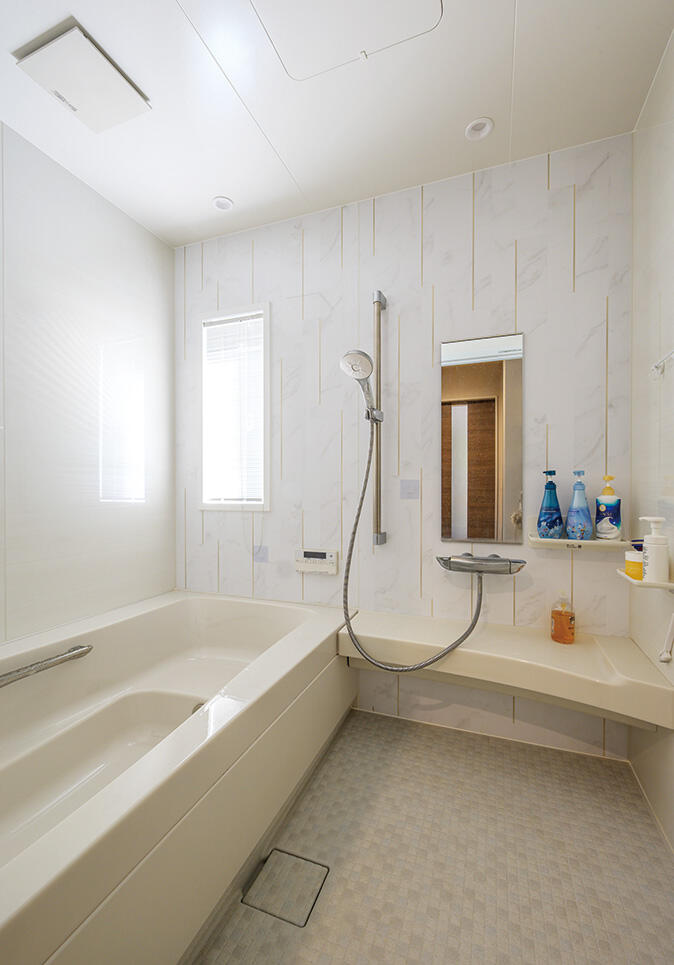キッチンはタッチレス水栓や広い調理台が便利です。IHヒーター前のガラスパネルも、油跳ねを考えて上までのタイプを選んで正解でした。リビングの奥にあるサンルームは天候を気にせず洗濯物が干せて、便利です。不十分だった耐震性や断熱性も強化してもらい、冬はガスファンヒーター一台で空間全体が暖かく過ごせます。家のことが初めてづくしの私たちのために、ある程度ピックアップして、細かくわかりやすく提案していただき感謝しています。